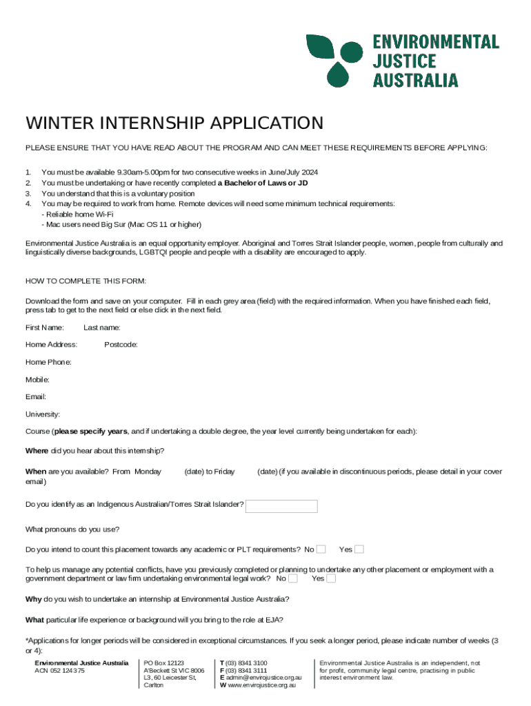 What is Winter Internship Application - envirojustice org Form?