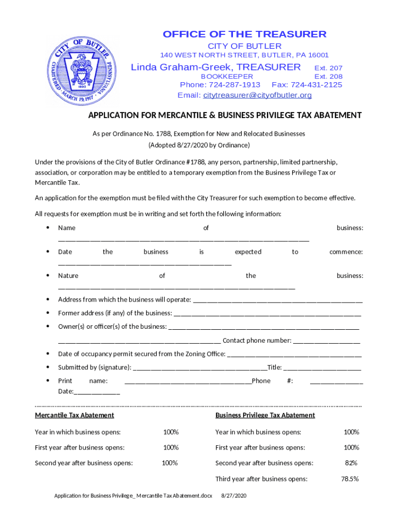 What is Application for Mercantile & Business Privilege Tax Abatement Form?