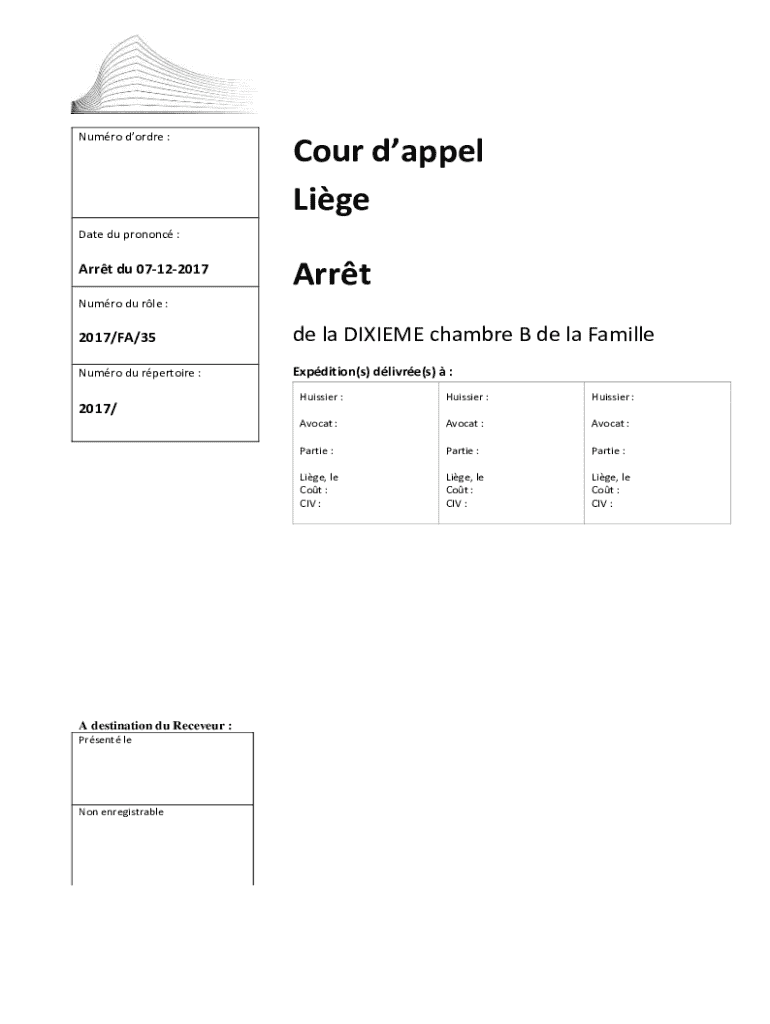 Literate Du pronouns :Art Du 07122017ArrtNumro Du RLE :2017/FA/35de la DIXIE chamber B de la FamilleNumro Du repertoire :Expedition(s) live(s) :2017/A destination Du Receiver