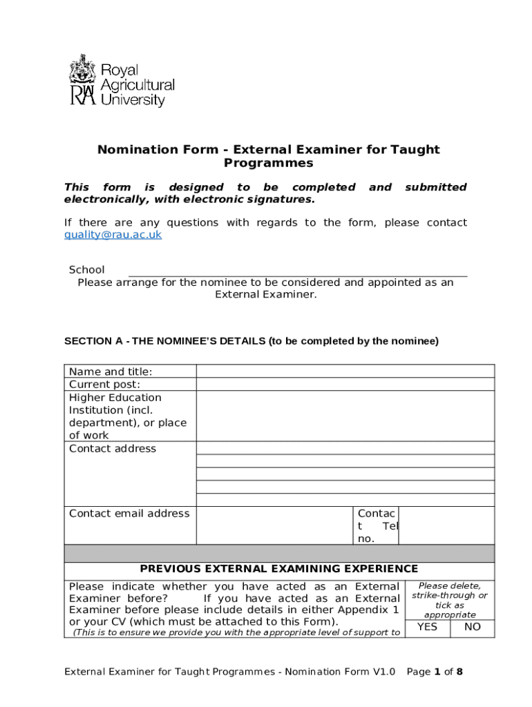 Instructions for the form What the University Expects of its External Examiners