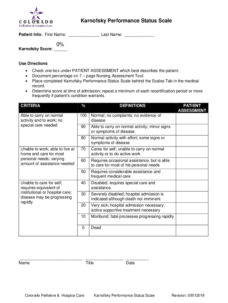 How to fill out karnofsky performance status scale?