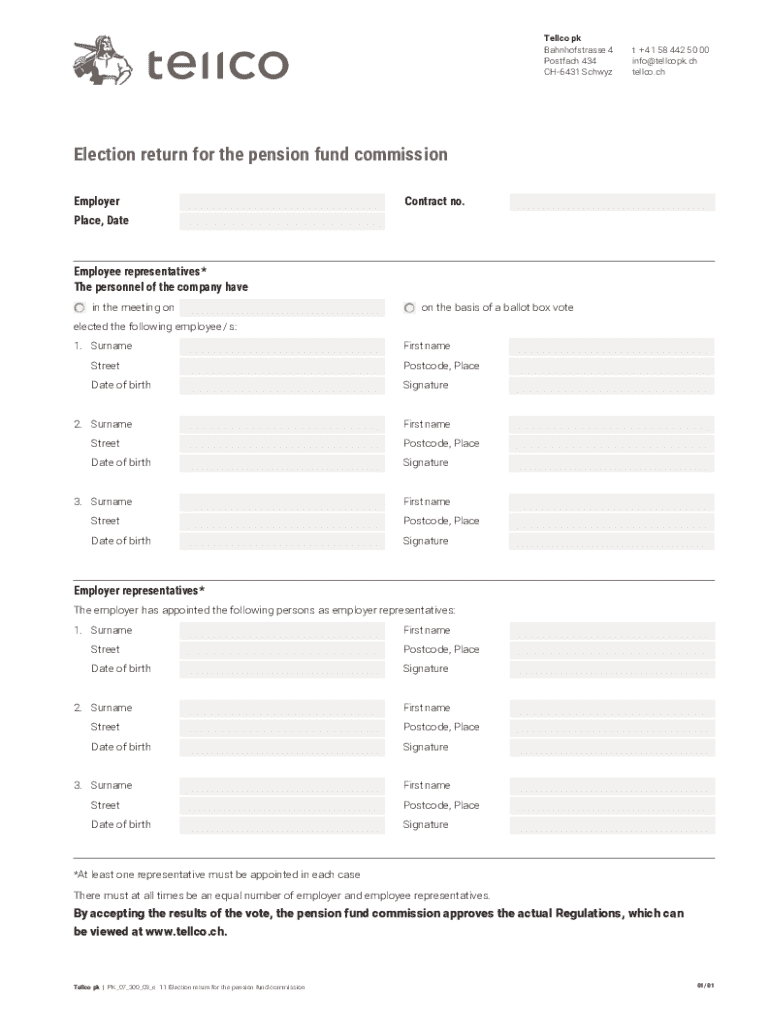 Get the free Election return for the pension fund commission