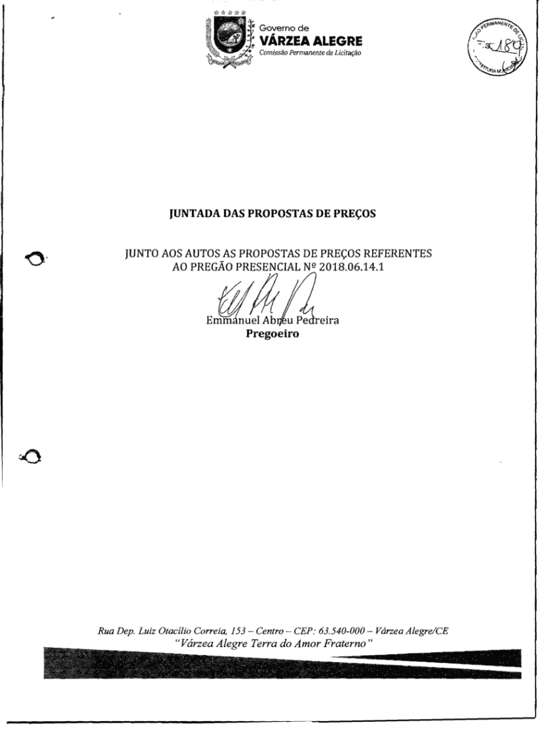 AO PRESO PRESENCE Ne 2 0 1 8 .0 6 .1 4 .1PregoeiroRua DEP. Luiz Ontario