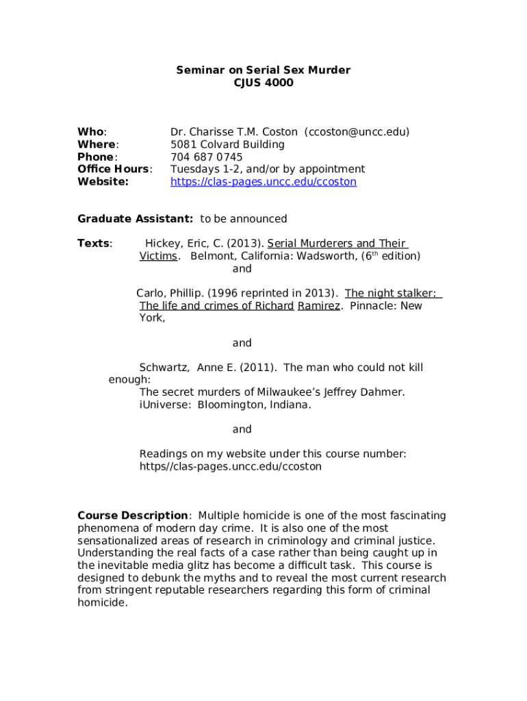 Frequently asked questions about the form Seminar on Serial Sex Murder
