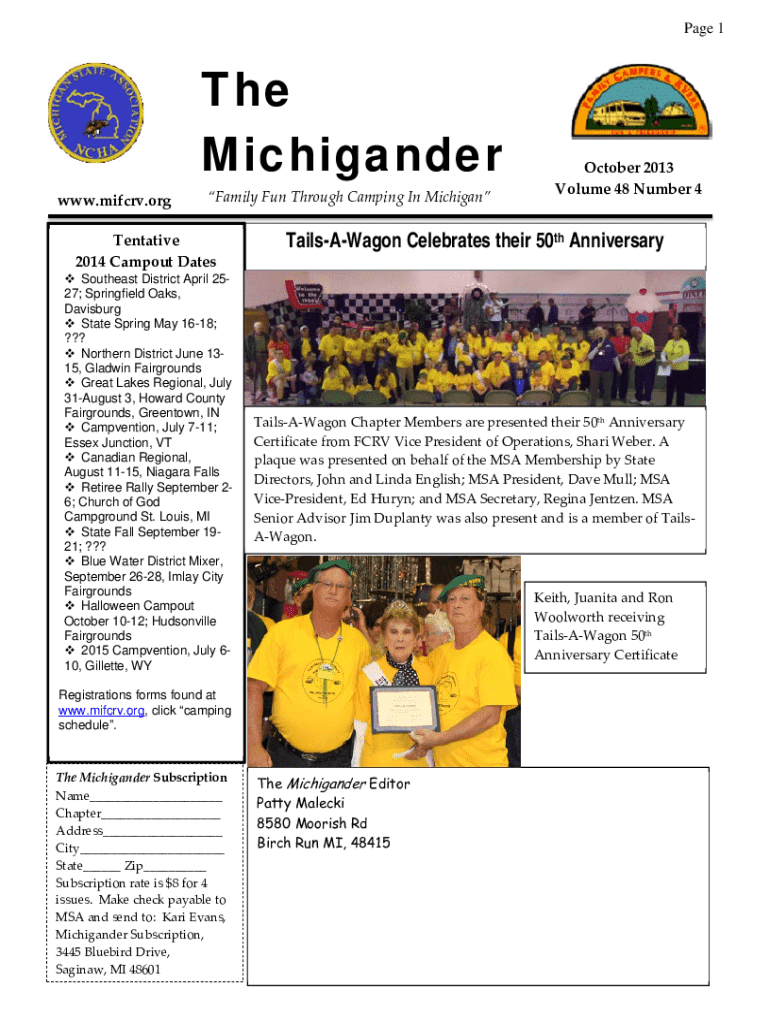 Discover family camping fun in Michigan with The Michigander\'s 2014 Campout Schedule, celebrating Tails-A-Wagon Chapter\'s 50th Anniversary and more!