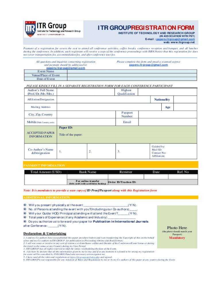 Register for the IT Group 2023 conference. Payment covers activities, conference proceedings, and more. Submit your details and ID proof.