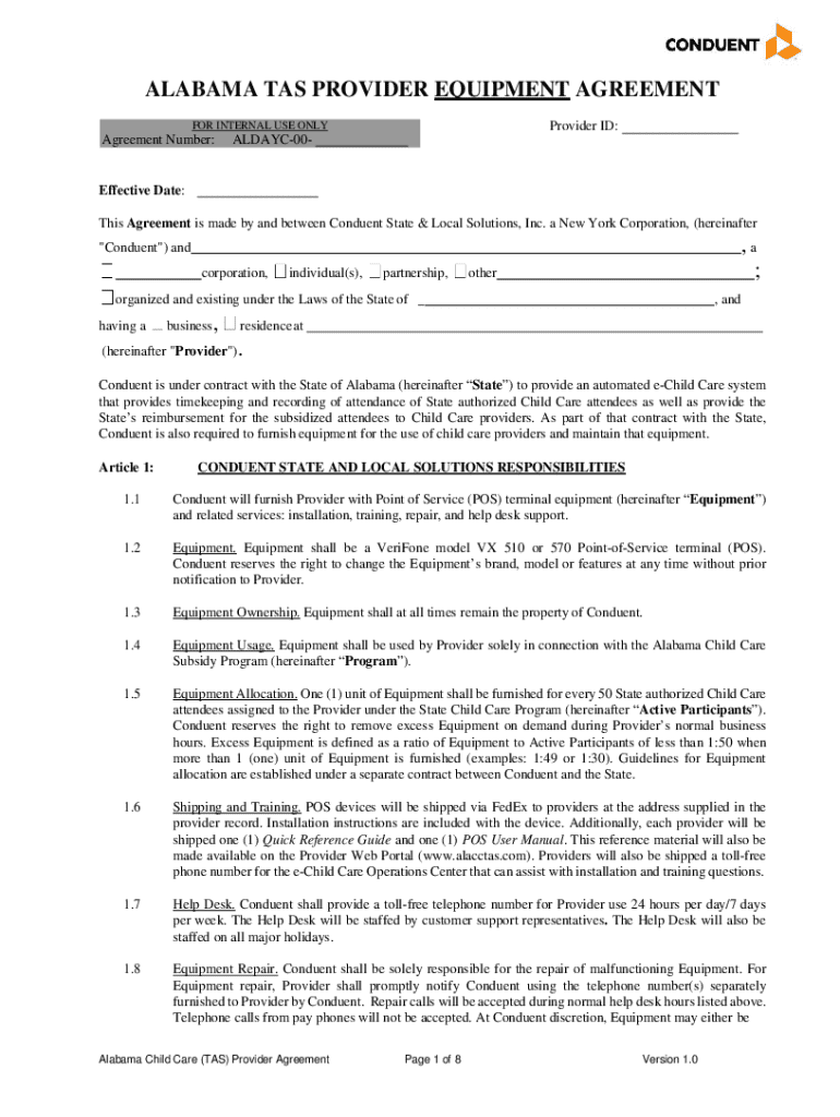 Get the free Alabama Tas Provider Equipment Agreement