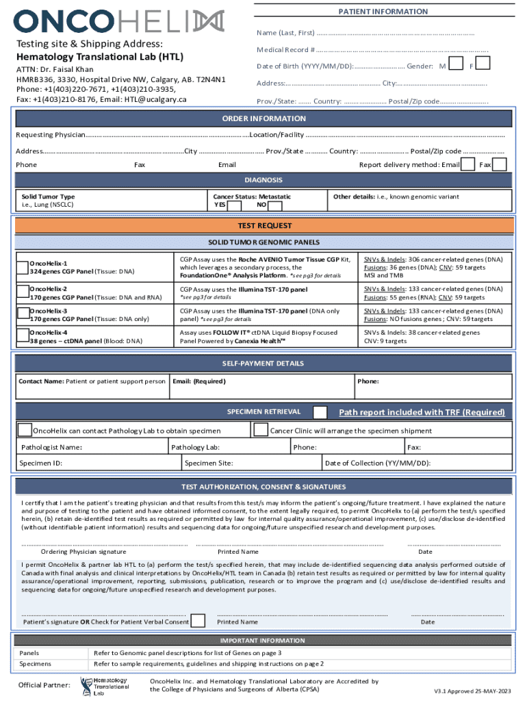 PATIENT INFORMATION Name (Last, First) .....................................................Testing site & Shipping Address: Hematology Translational Lab (HTL)Medical Record # ..................................................................................