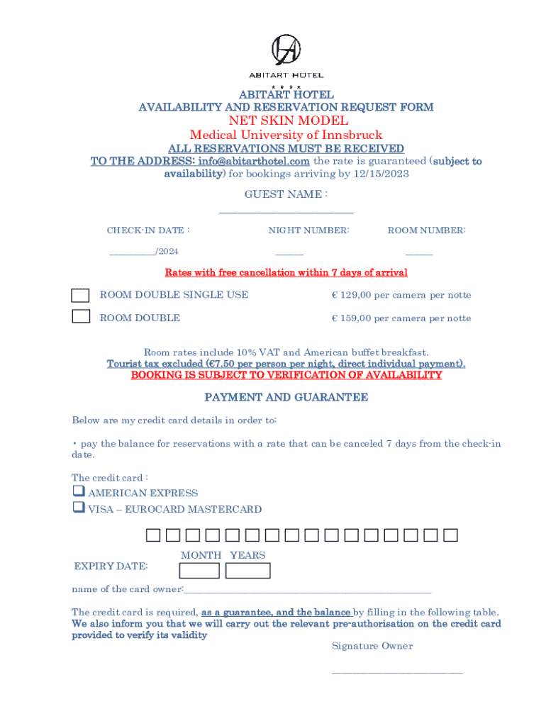 AVAILABILITY AND RESERVATION REQUEST FORMER SKIN MODEL