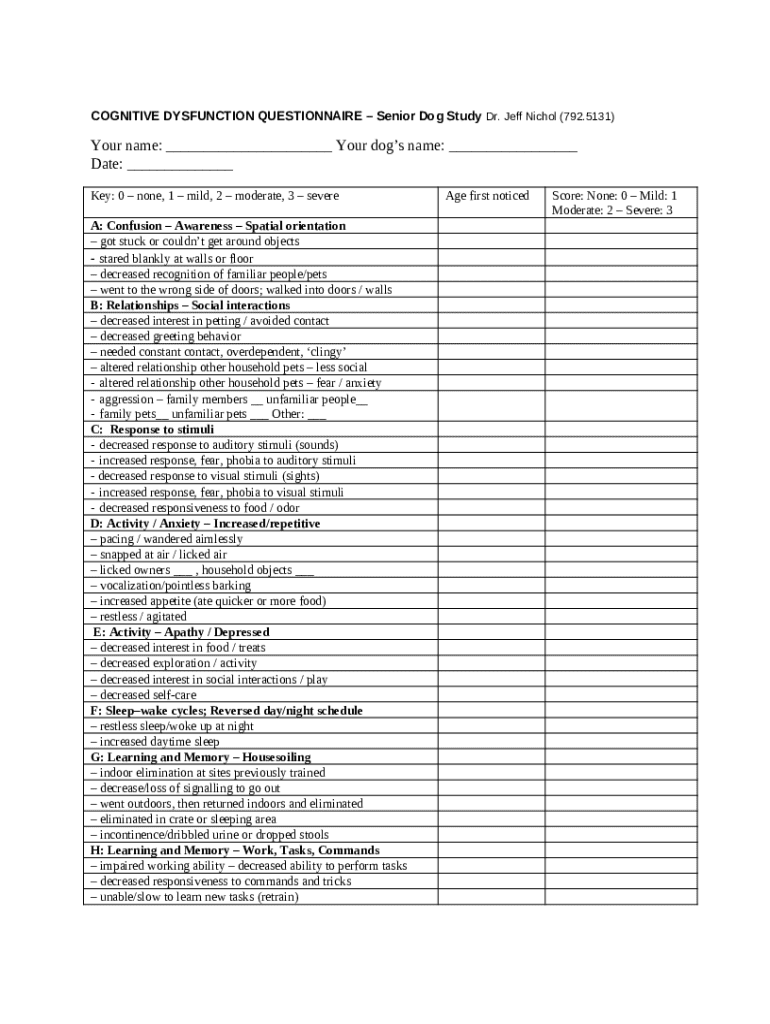 Cognitive Dysfunction Questionnaire - Senior Dog Study word template: frequently asked questions