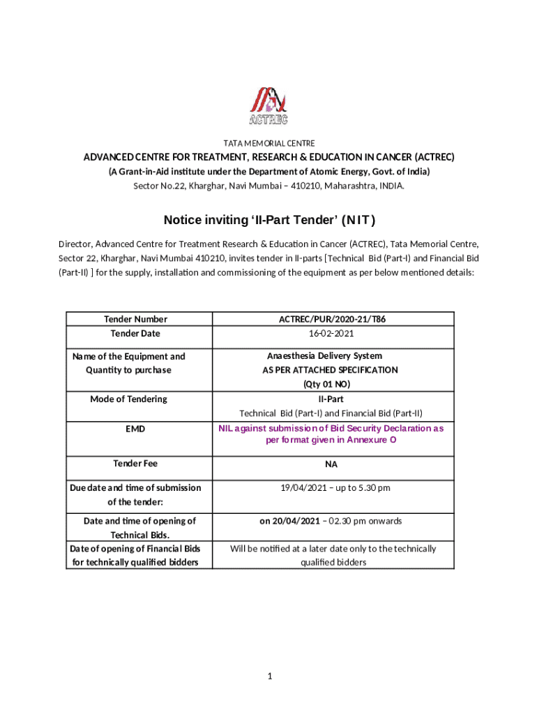 What is Notice Inviting Ii-part Tender Form?