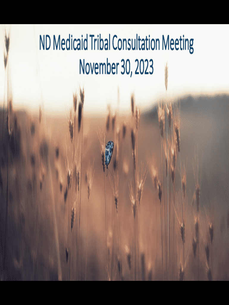 ND Medicaid Tribal Consultation Meeting November 30, 2023Welcome & IntroductionsAgenda at a GlanceDivision of Public Health Indian Affairs Medical Services UpdatesMake sure you are signed up for Medicaid