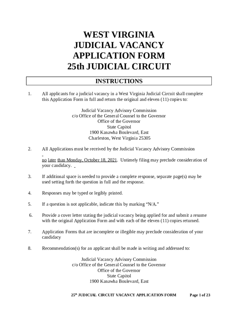 Template West Virginia Judicial Vacancy Application - governor wv instructions
