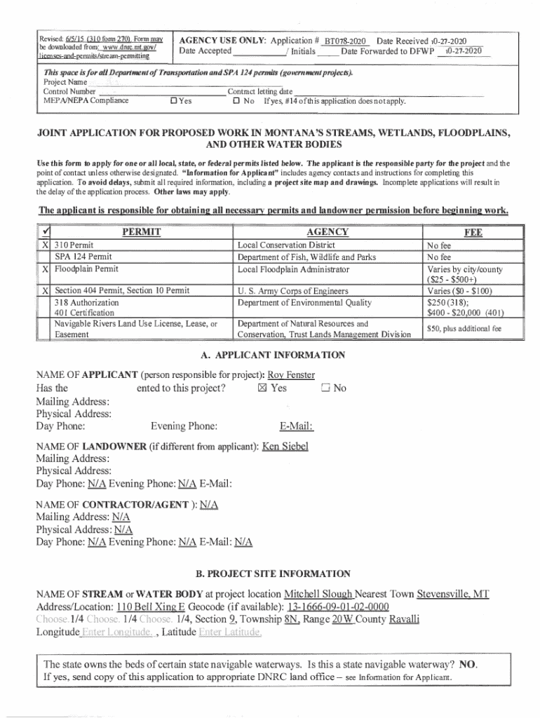 licensesandoem1its/streamoermittin!!AGENCY USE ONLY: Application# BT0782020 Date Received 10272020