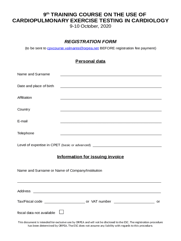 How to fill out Registration for 9th Training Course on Cpet in Cardiology