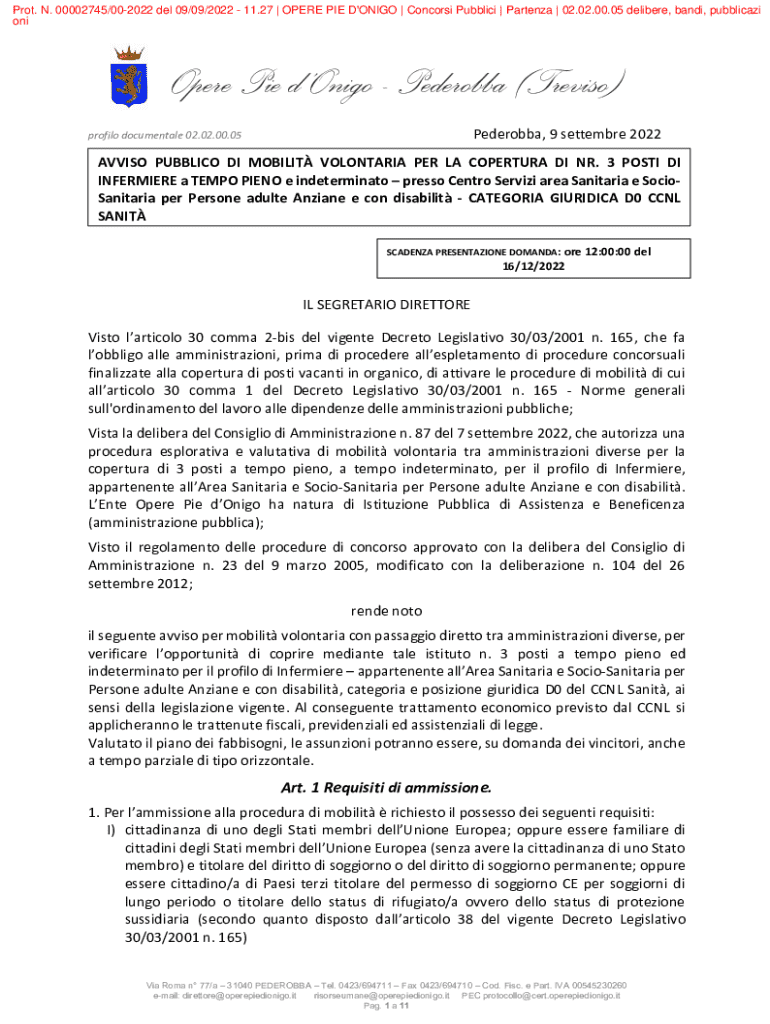 Ottieni il gratuito 27 OPERE PIE D'ONIGO Concorsi Pubblici Partenza 02
