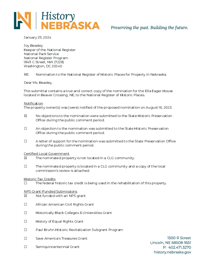 Get the free National Register of Historic Places Registration Form