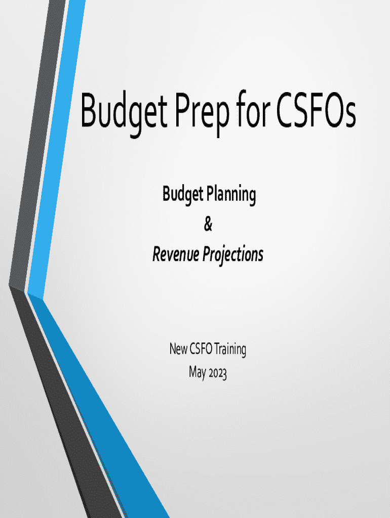 Budget Prep for CUFOS Budget Planning & Revenue Projections CFO Training May 2023What is a Budget? A Forecast / A Projection. Be Wise Use Available Data Be Conservative Be RealisticMulti Year budget