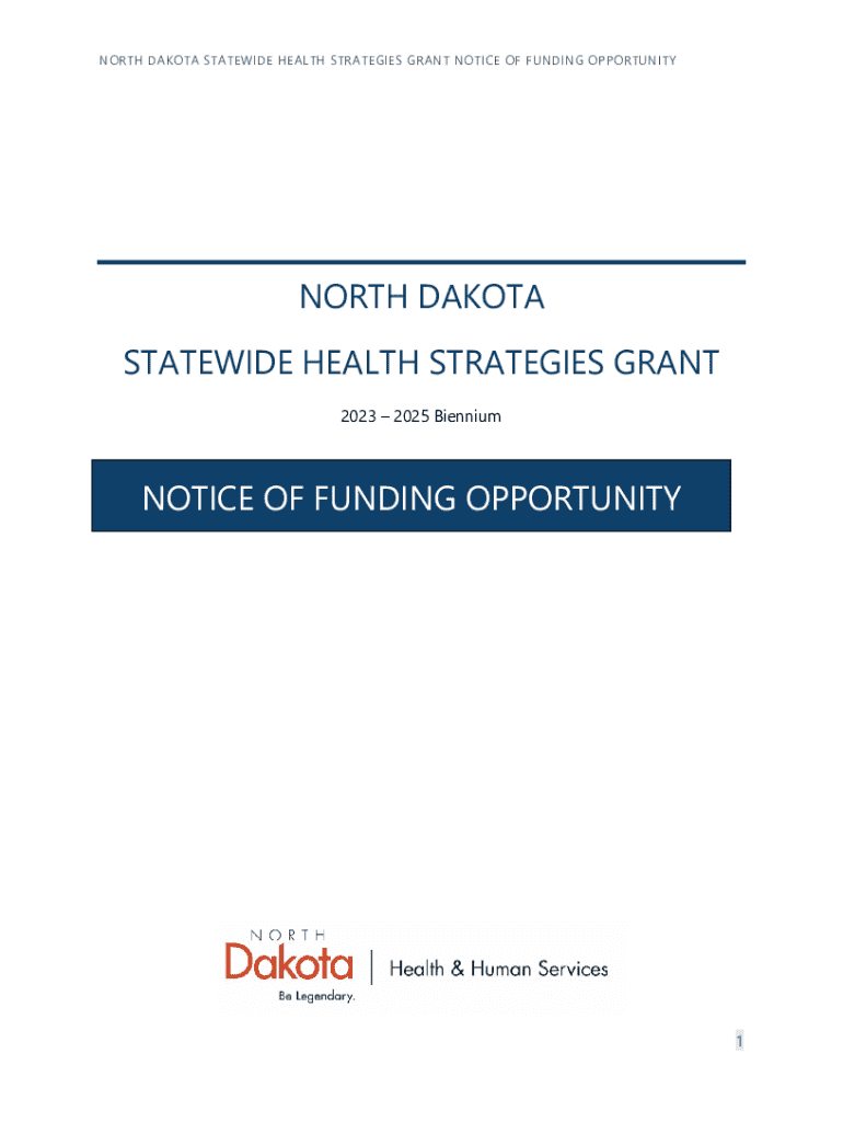 NORTH DAKOTA STATEWIDE HEALTH STRATEGIES GRANT NOTICE OF FUNDING OPPORTUNITYNORTH DAKOTA STATEWIDE HEALTH STRATEGIES GRANT 2023 2025 BienniumNOTICE OF FUNDING OPPORTUNITY1NORTH DAKOTA STATEWIDE HEALTH