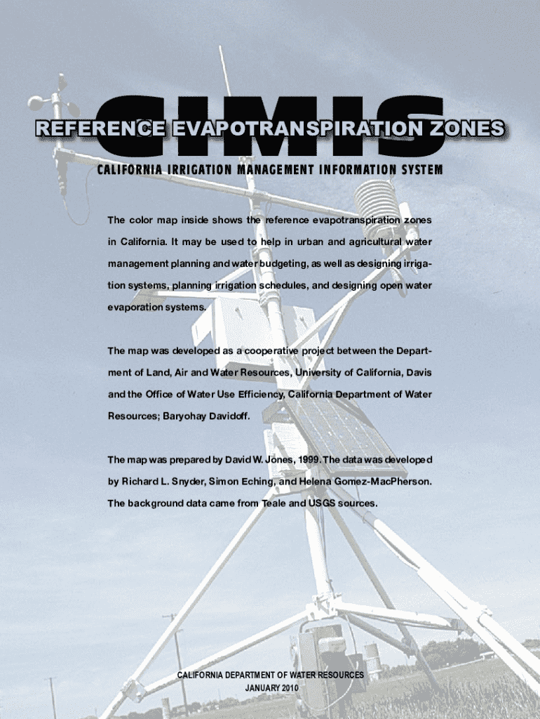 Explore California\'s reference evapotranspiration zones for effective irrigation management and water budgeting, developed by UC Davis and the Department of Water Resources.