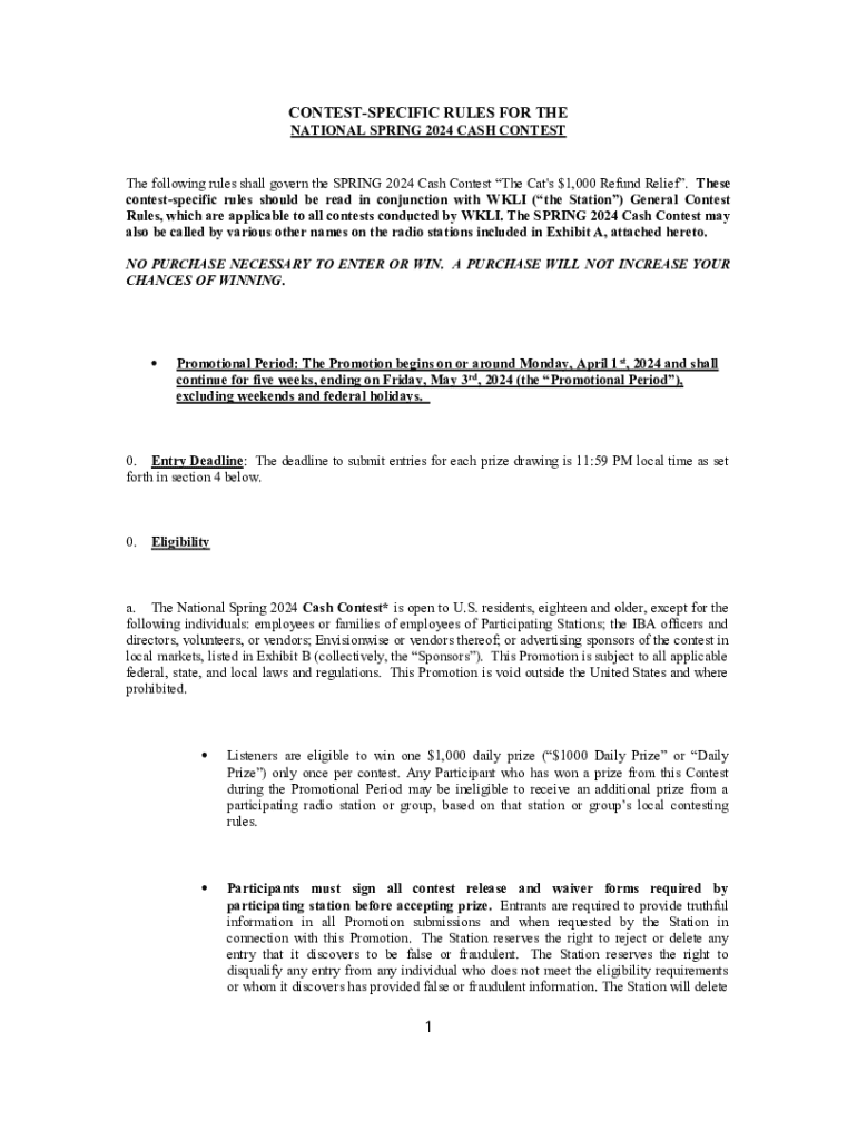 Explore the rules for the National Spring 2024 Cash Contest, including entry methods, eligibility, and prize details. Win one of the $1,000 daily prizes!