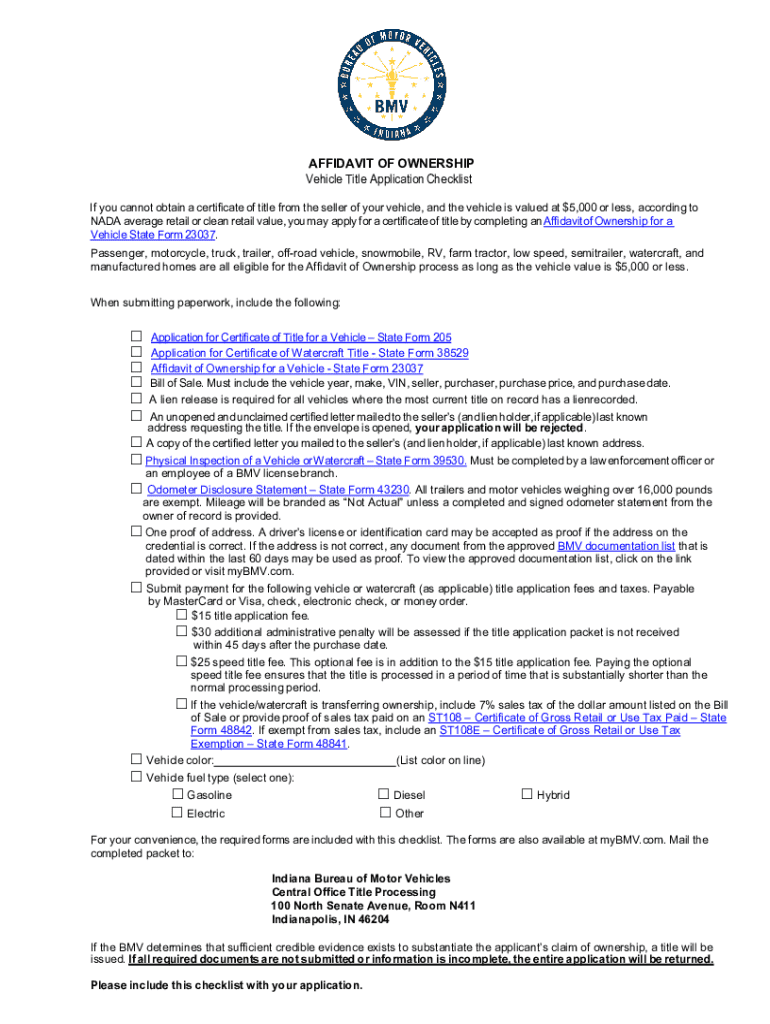 Get the free Affidavit of Ownership for a Vehicle