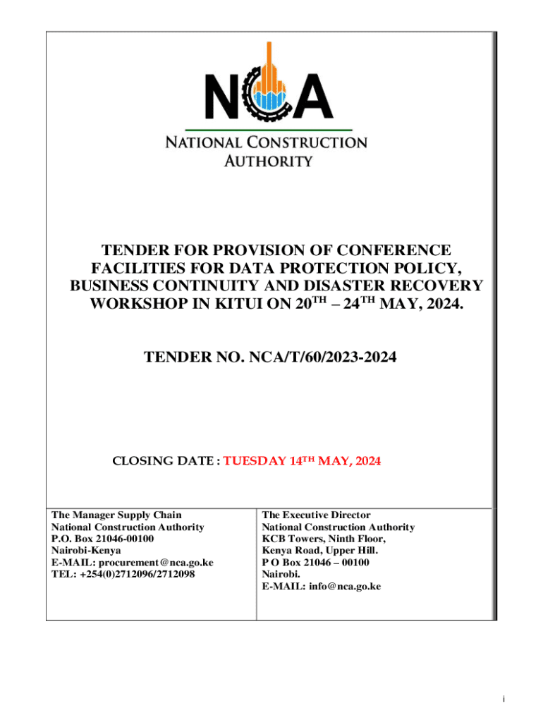 Get the free Tender For Provision Of Conference Facilities For Data ...