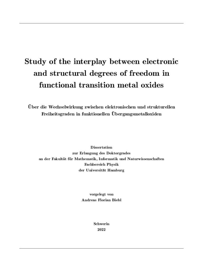 Get the free The Interplay Between Structural and Electronic Degrees of ... - ediss sub uni-hamburg