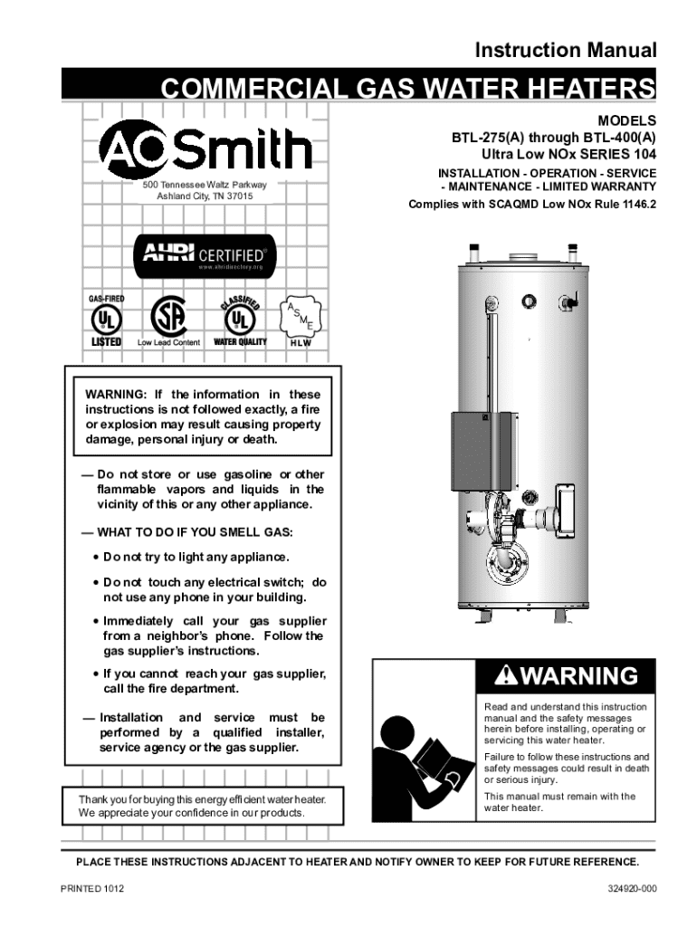 Get the free BTL 275(A), 310(A), 366(A), & 400(A) ULTRA LOW NOx ...