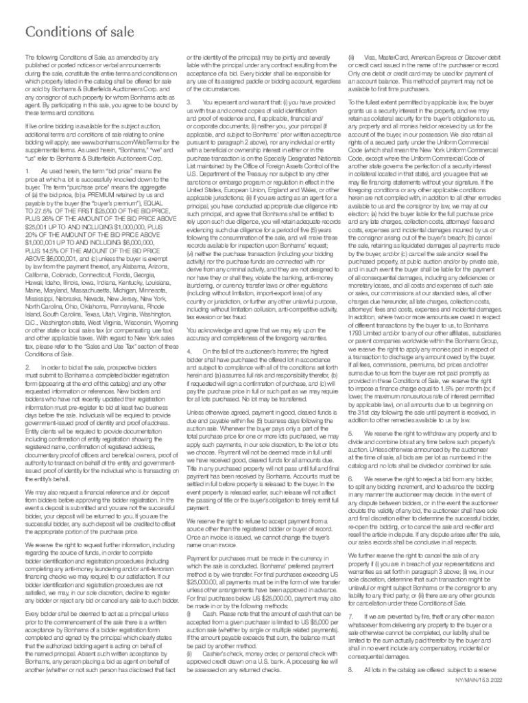 Conditions of sale The following Conditions of Sale, as amended by any published or posted notices or verbal announcements during the sale, constitute the entire terms and conditions on which property