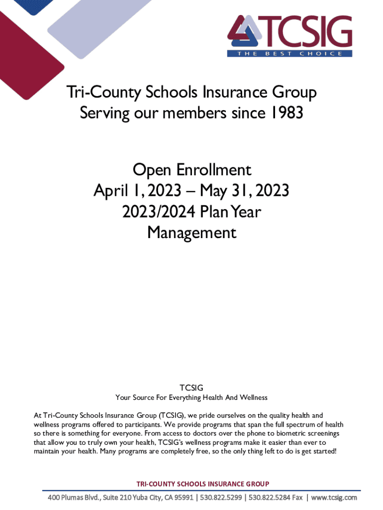 Get the free Tri-county Schools Insurance Group Open Enrollment
