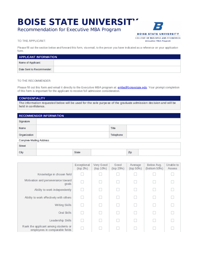 Instructions for the Recommendation for Executive Mba Program form