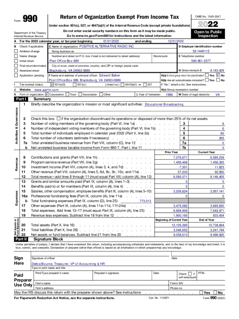 Get the free C Name of organization POSITIVE ALTERNATIVE RADIO INC