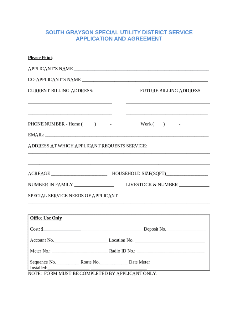 How to fill New Service RequestSouth Grayson Special Utility ... word template