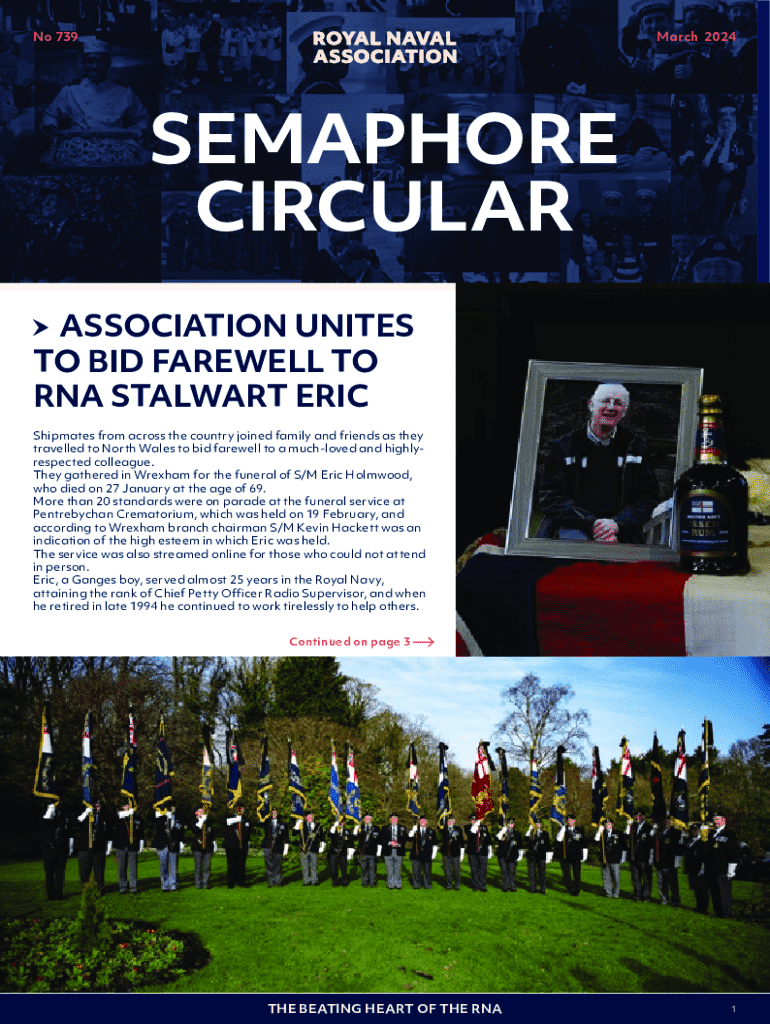 No 739March 2024SEMAPHORE CIRCULAR ASSOCIATION UNITES TO BID FAREWELL TO RNA STALWART ERIC Shipmates from across the country joined family and friends as they travelled to North Wales to bid farewell