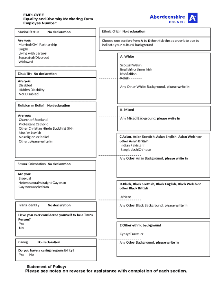 Instructions for the Equality and Diversity Monitoring - arcadialite aberdeenshire gov form