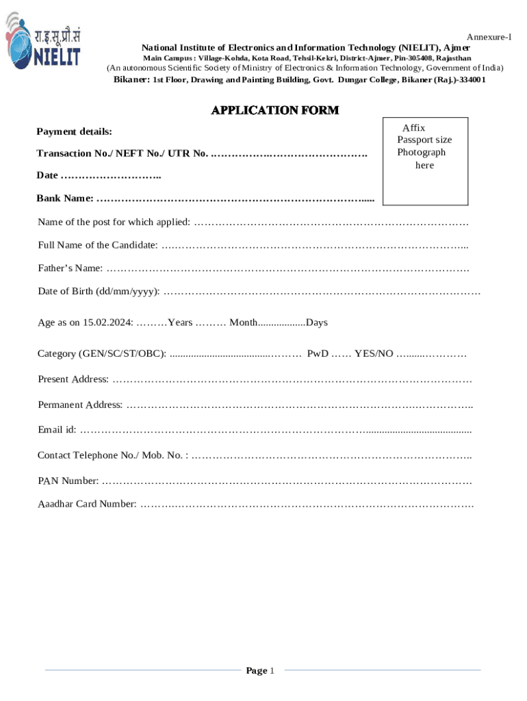 Instructions for the NIELIT Ajmer ContactGovernment of India : National Institute ... form