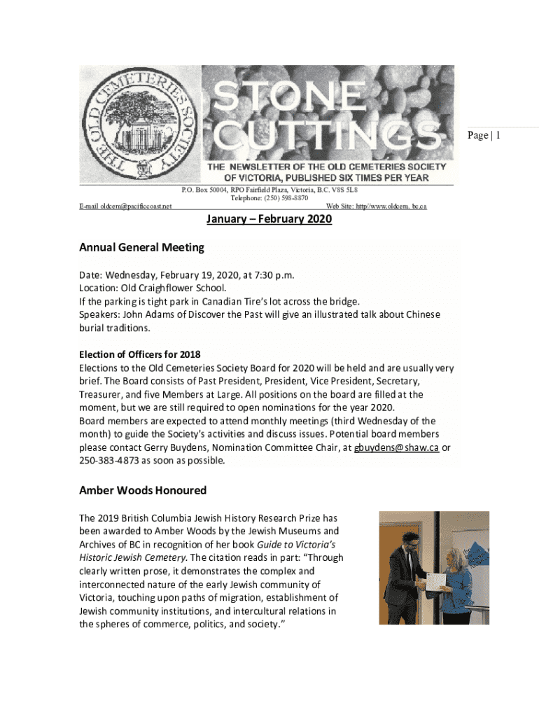 Page | 1Email oldcem@pacificcoast.netP.O. Box 50004, RPO Fairfield Plaza, Victoria, B.C. V8S 5L8 Telephone: (250) 5988870 Web Site: http//www.oldcem. bc.caJanuary February 2020 Annual General Meeting