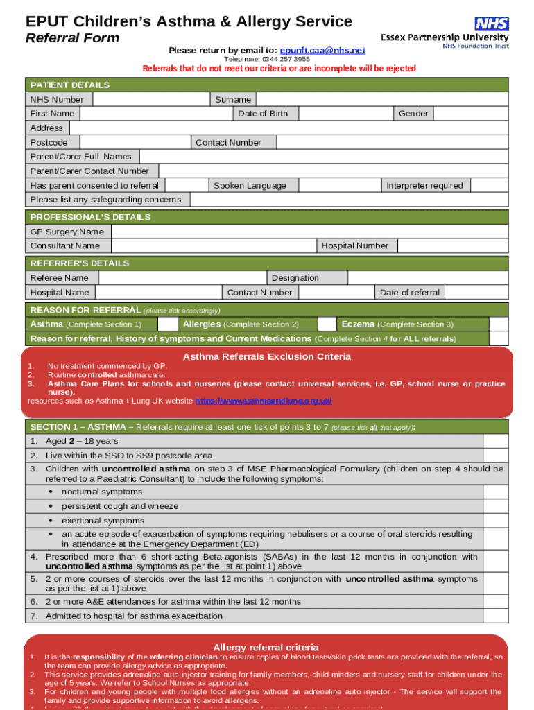 Template Eput Children’s Asthma & Allergy Service Referral instructions