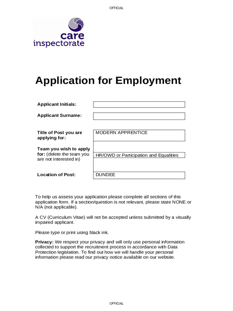 Instructions for the Application for Employment Version 2024.02.15 Applying for form