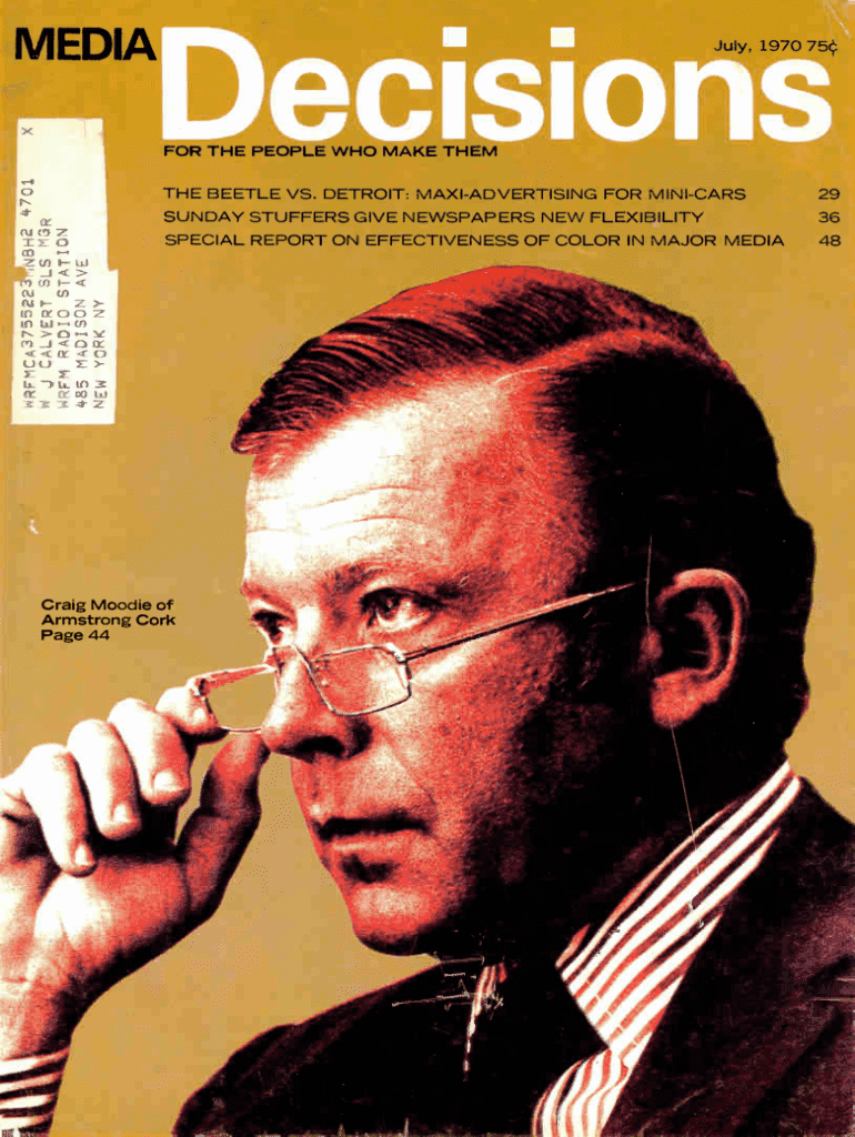 MEDIAaoil VP FOR THE PEOPLeWHO MAK44oJuly, 1970 75erTHETHE BEETLE VS. DETROIT: MAXIADVERTISING FOR MINICARS29SUNDAY STUFFERS GIVE NEWSPAPERS NEW FLEXIBILITY36SPECIAL REPORT ON EFFECTIVENESS OF COLOR IN MAJOR MEDIA48Craig Moodie of Armstrong Cork Page 44Ask Simmons: what magazine is growing faster among 18 to 34 year olds than the general and news weeklies?Since 1962, Geographic\'s 18 to 34 year old readers have soared 155%. That\'s a46% faster growth rate in this vital area than Newsweek, the...