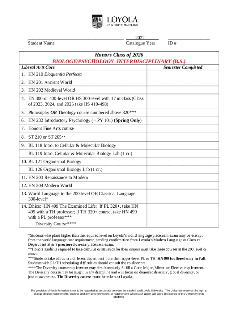 Template Honors Class of 2026 Biology/psychology Interdisciplinary (b.s.) Curriculum instructions