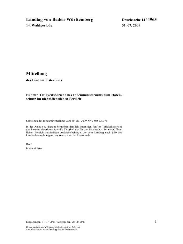 Land tag von BadenWrttembergDrucksache 14 / 496314. Wahlperiode31. 07. 2009Mitteilung
