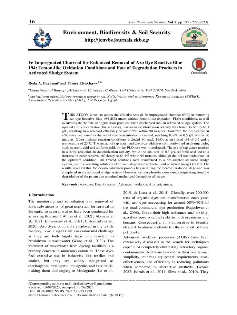 Get the free Fe-Impregnated Charcoal for Enhanced Removal of Azo Dye ...