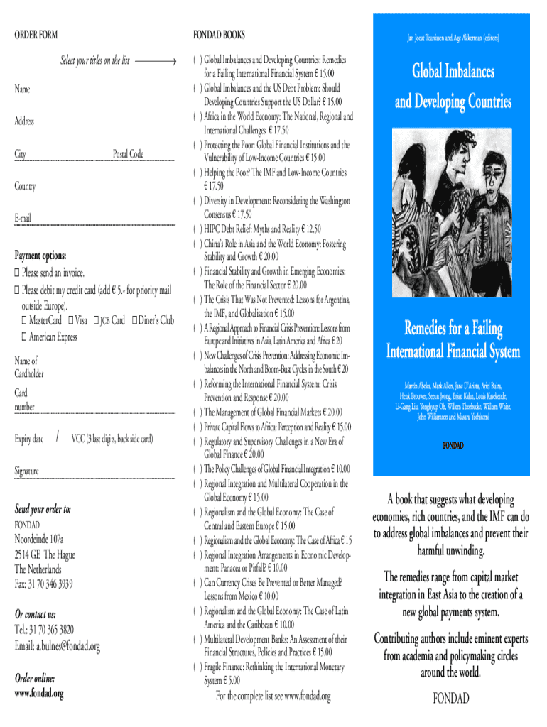ORDER FORMFONDAD BOOKSSelect your titles on the list Name Address CityPostal CodeCountry EmailPayment options: Please send an invoice. Please debit my credit card (add 5. for priority mail outside