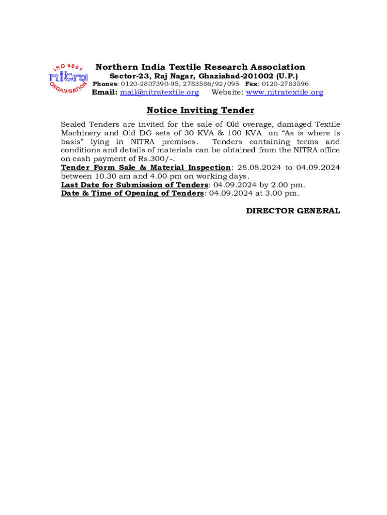 Northern India Textile Research Association Sector23, Raj Nagar, Ghaziabad201002 (U.P.) Phones: 0120280739095, 2783586/92/095 Fax: 01202783596Email: mail@nitratextile.orgWebsite: www.nitratextile.orgNotice