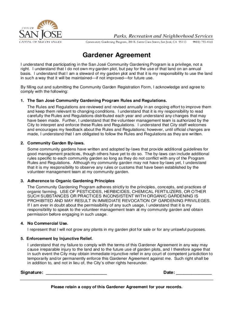 Get the free Gardener Agreement