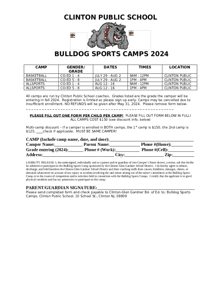 Instructions for the form Nike Basketball Camp at Clinton Community Center
