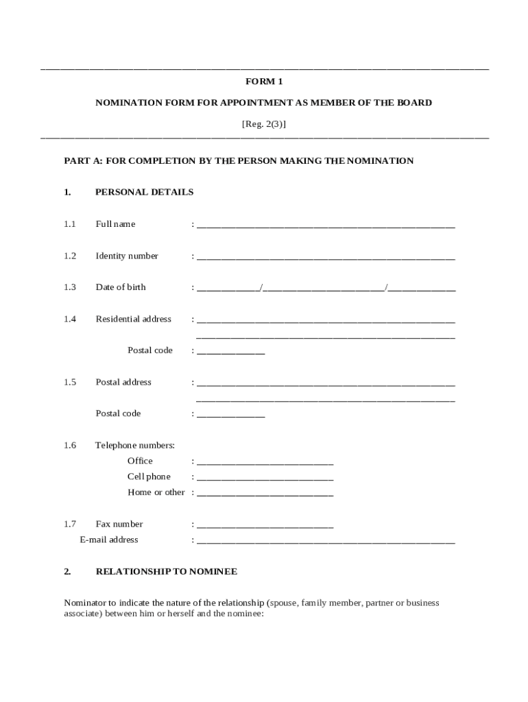 How to fill Nomination, Registration, and Appointment of CHs word template