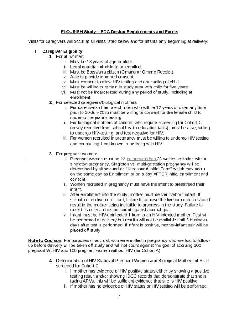 Instructions for the form Flourish Study Edc Design Requirements and s